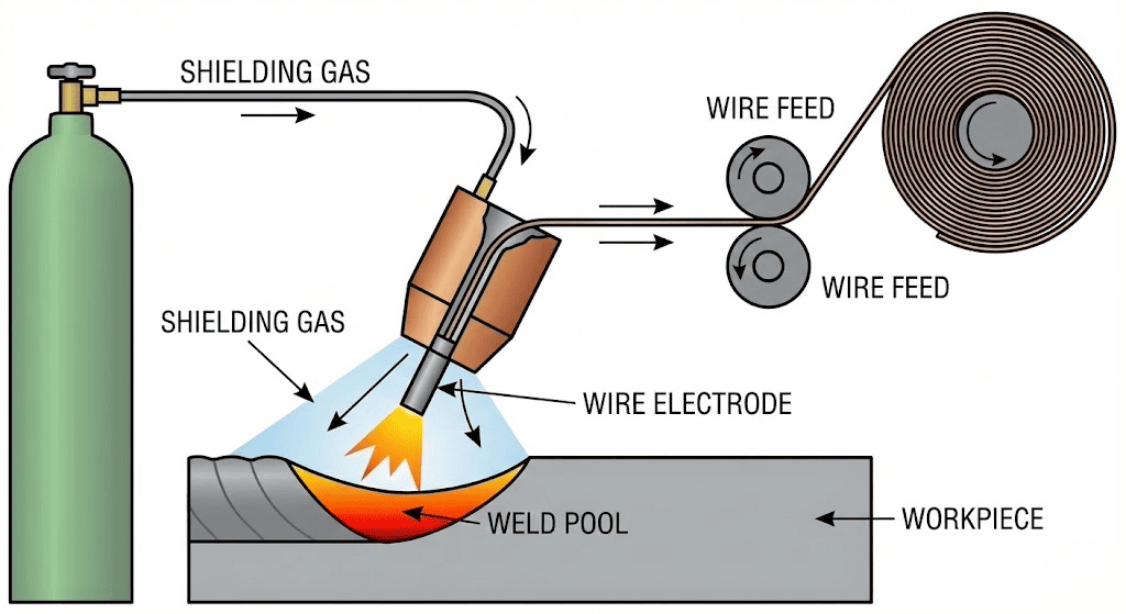 - MAG – utilizează gaze active precum CO₂ sau amestecuri de gaz.