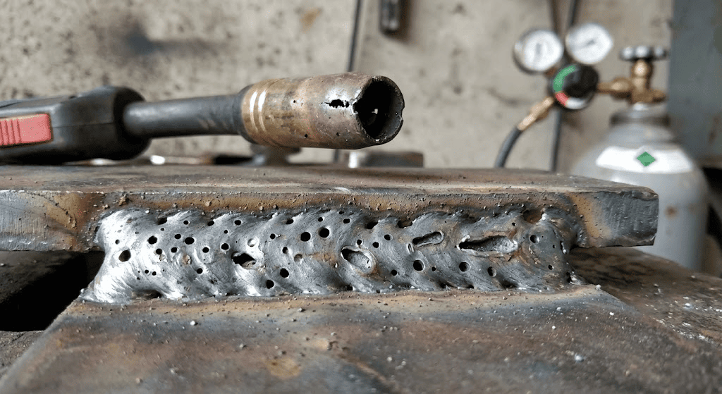 Una dintre cele mai frecvente probleme pentru începători este apariția porozității în cordonul de sudură. Sudura poroasă arată ca o suprafață plină de mici găuri sau bule.