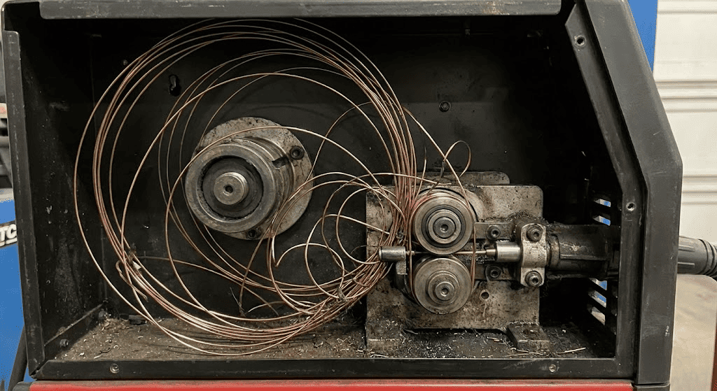 „Bird nesting” este un termen folosit pentru a descrie situația în care sârma de sudură se încurcă în mecanismul de avans al aparatului.
