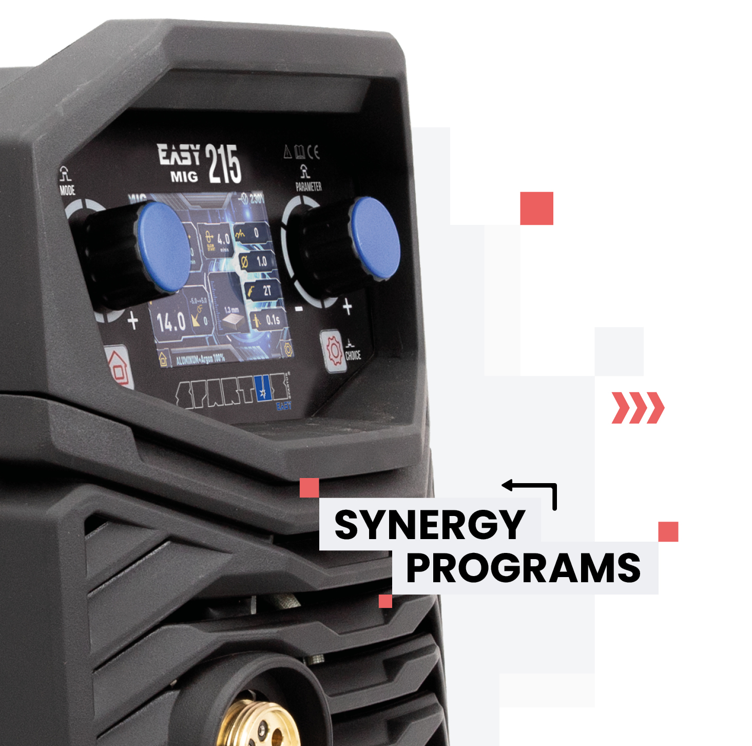 Programul Easy Synergy încorporat ajustează automat parametrii în funcție de tipul și diametrul sârmei selectate, permițând în același timp reglarea fină manuală - echilibrul perfect între precizie și confort.