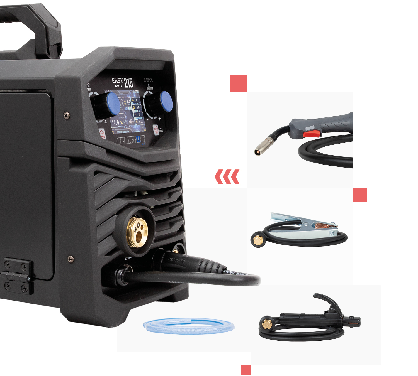 Toate aparatele de sudură SPARTUS din seria Easy sunt furnizate ca seturi complete, inclusiv toate componentele necesare pentru a începe lucrul imediat.