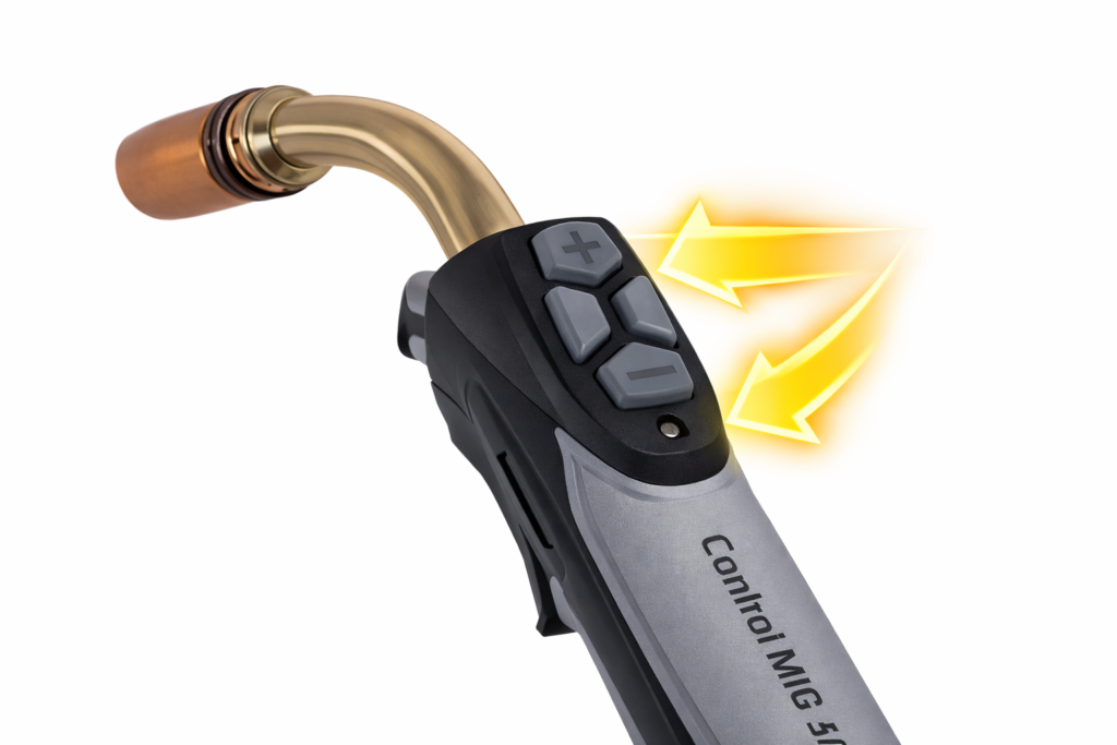 SPARTUS ProMIG 5000 este disponibilă în versiunea TOWER, livrată cu un pistolet MIG standard SP 501 4m și o torță specializată cu sistem de control integrat în mâner, ceea ce oferă un avantaj semnificativ față de soluțiile standard disponibile pe piață. Spre deosebire de torțele MIG convenționale, această soluție permite reglarea directă a tensiunii și a curentului de sudură de la mânerul torței, fără a fi nevoie să acționați panoul principal de control. Acest lucru îmbunătățește semnificativ ergonomia și permite operatorului să ajusteze dinamic parametrii în timpul sudării, ceea ce este deosebit de important atunci când se lucrează la structuri mari, în zone greu accesibile sau în condiții tehnologice schimbătoare. Reglarea în timp real se traduce într-un control mai bun al arcului, stabilitate a procesului și o calitate mai mare a sudurii.